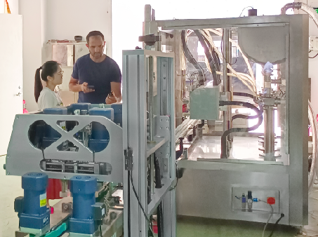 2024.8.29,伴隨著熱烈的歡迎,我們引來(lái)了國(guó)際友人到我司試機(jī),客戶訂購(gòu)的是一條灌裝產(chǎn)線,用來(lái)執(zhí)行乳液、精油等多種產(chǎn)品的灌裝工作。此次訂單包含的設(shè)備有四頭追蹤灌裝機(jī)?、旋蓋機(jī)、